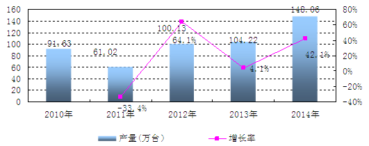 圖表:2009-2014年中國(guó)分析儀器產(chǎn)量及其增速走勢(shì)圖