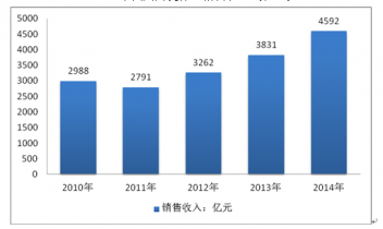 2010-2014年我國陶瓷行業(yè)銷售收入(億元)