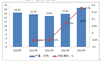 2010-2014年中國(guó)錫產(chǎn)量增長(zhǎng)趨勢(shì)圖