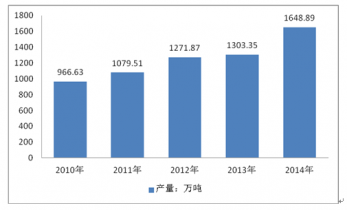 2010-2014年我國涂料行業(yè)產(chǎn)量(萬噸)
