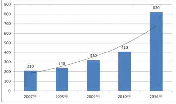 2007-2016年中國渦輪增壓器行業市場容量分析(單位:萬臺)