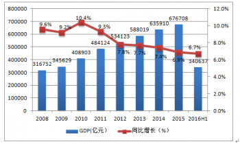 2011- 2016年中國國內(nèi)生產(chǎn)總值及其增長速度