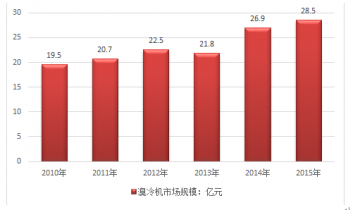 2014年我國國內溴冷機市場規模為26.9億元,2015年國內需求規模增長至28.5億元,規模同比增長5.95%。