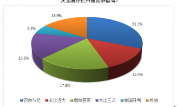 目前國內溴冷機行業集中度較高,處于寡頭壟斷格局,主要生產商為雙良節能、大連三洋、煙臺荏原、長沙遠大及美國開利等公司,合計占據國內80%以上的市場份額。