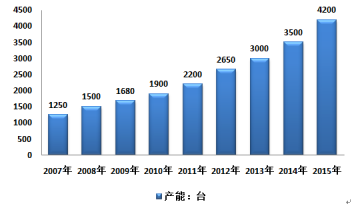 2007-2015年中國水平定向鉆機行業產能情況