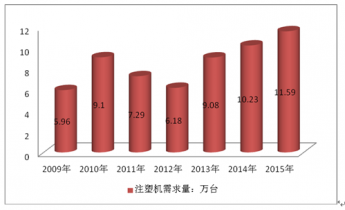 2009-2015年中國注塑機行業需求量統計
