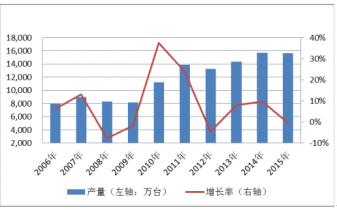 2010-2015年空調(diào)產(chǎn)量及增長率