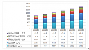 2011-2016年中國(guó)企業(yè)培訓(xùn)按培訓(xùn)職責(zé)細(xì)分市場(chǎng)