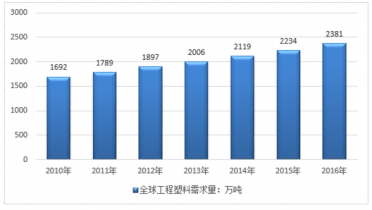 工程塑料用于替代金屬在各種終端行業中的應用,尤其是日益嚴格的環保法規要求汽車減少排放量和提高燃油經濟性,工程塑料大量應用于汽車和運輸行業。此外,家電產品、電器及電子產品、包裝、醫療、建筑等行業也廣泛使用工程塑料。工程塑料作為當今世界塑料工業中增長速度最快的領域,其發展不僅對國家支柱產業和現代高新技術產業起支撐作用同時也推動傳統產業改造和產品結構的調整,未來工程塑料將有明朗的發展前景。