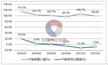 2016-2017年中國(guó)挖掘機(jī)產(chǎn)銷率走勢(shì)圖