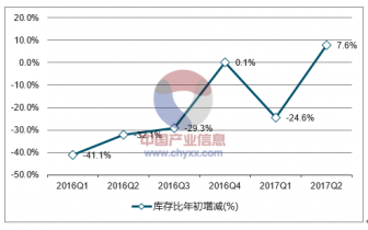 2016-2017年中國(guó)挖掘機(jī)庫(kù)存比年初增減走勢(shì)圖