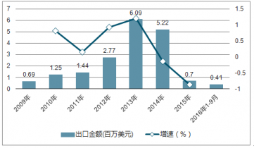 從出口額方面來看,數(shù)據(jù)顯示,2016年1-9月我國光瓷釉及類似制品出口金額為0.41百萬美元,與上年同期相比下降了24.07%。2015年我國光瓷釉及類似制品出口金額為0.70百萬美元,與上年同期相比下降了86.59%。