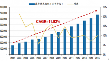 近年來我國對于供熱需求不斷增加,城市供熱面積從2002年的15.56億平方米上升至2015年67.22億平方米, 是原來的四倍多,年均復(fù)合增長率約為11.92%。 但與此同時全國實行控制煤炭消費總量,供給不足問題日益凸顯。如何用最少煤耗實現(xiàn)最大供熱成為解決目前供熱缺口的關(guān)鍵問題。