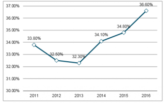 圖表:2011-2017中國城鄉(xiāng)居民恩格爾系數(shù)走勢(shì)圖
