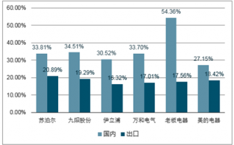 我國(guó)廚房小家電企業(yè)可劃分為出口型和內(nèi)銷型兩類,出口產(chǎn)品利潤(rùn)率水平相對(duì)較低。相比之下,專注國(guó)內(nèi)市場(chǎng)的小家電企業(yè),不僅分享了國(guó)內(nèi)廚房電器市場(chǎng)的快速增長(zhǎng),而且通過(guò)自主品牌運(yùn)營(yíng)和營(yíng)銷渠道建設(shè),具有了一定的議價(jià)能力,經(jīng)營(yíng)狀況和利潤(rùn)水平普遍好于出口型企業(yè),同類產(chǎn)品在國(guó)內(nèi)市場(chǎng)銷售的價(jià)格和利潤(rùn)率普遍高于出口。