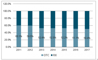 零售藥店OTC和RX銷售規(guī)模占比