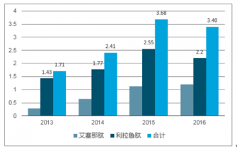 2016年全國城市公立醫(yī)院艾塞那肽銷售額1.20億元、上升6%,利拉魯肽銷售額2.20億元、下滑14%左右。利拉魯肽談判進(jìn)入全國醫(yī)保乙類,其他品種僅在部分省份增補(bǔ)目錄內(nèi),月費(fèi)用以降價(jià)后的利拉魯肽最低、在1640元/月左右。