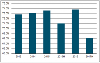 圖表23:2011-2017年車險(xiǎn)行業(yè)集中度