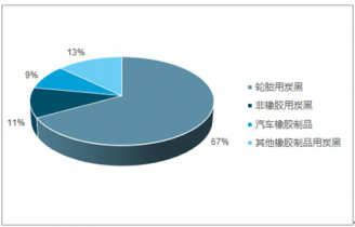 炭黑按主要用途分類可分為橡膠用炭黑、導(dǎo)電炭黑和色素炭黑等。在這些用途中,用量最大的是橡膠用炭黑。橡膠用炭黑約占炭黑總量的 89.5%,橡膠用炭黑中又以輪胎用炭黑用量最大,約占橡膠用炭黑的 67.5%;非橡膠用炭黑約占 10.5%。