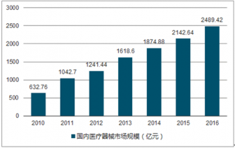 2010-2016年中國(guó)醫(yī)療器械行業(yè)市場(chǎng)規(guī)模