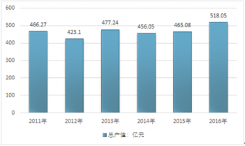 2014年我國味精制造行業(yè)產(chǎn)值為456.05億元,2015年行業(yè)產(chǎn)值為465.08億元,2016年行業(yè)產(chǎn)值增長至518.05億元。