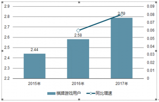 2015-2017年棋牌游戲用戶規模及增速