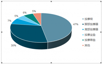2017 年按摩椅的市場份額占比高達 47%。而在所有的小型按摩器具產品中,腳部按摩器具的市場份額占比最高,僅次于按摩椅,2017 年的市場銷售額的占比大約為 30%。剩余不到四分之一的市場則被其他小型的按摩器具產品占據,例如,肩部按摩器、按摩坐墊、按摩靠墊等相關產品,每種產品的市場份額基本維持在 5%-7%之間。