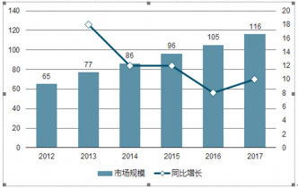 圖表:2015-2017年中國GDP總量及增長趨勢圖