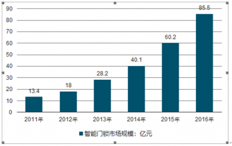 2015年智能門鎖行業(yè)市場規(guī)模超過了60億元,2016年市場規(guī)模達到了85.5億元。傳統(tǒng)機械鎖占有大部分市場份額,智能門鎖還沒有完全走入家庭,主要市場需求在金融、軍警、商用辦公、高檔住宅等市場。因此總體來看,目前傳統(tǒng)鎖具仍占據(jù)更好的市場份額,但近幾年來智能門鎖行業(yè)發(fā)展迅速,地位不斷提高,有著廣闊的發(fā)展空間。