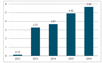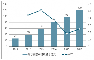 2011-2016年中國數(shù)字閱讀行業(yè)市場規(guī)模