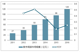2011-2016年中國數字閱讀行業市場規模