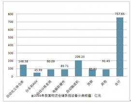 2016年我國物流倉儲系統(tǒng)設(shè)備分類規(guī)模(單位:億元,%)
