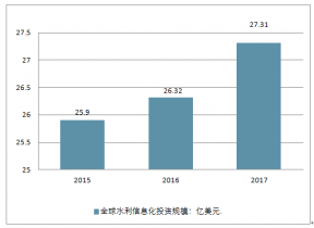 2016年全球水利信息化投資規模為26.32億美元,較2015年的25.9億美元增長1.62%。2017年全球水利信息化投資規模達到27.31億美元.