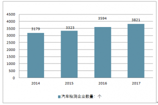 截止2017年底,在機動車、電子產(chǎn)品和日用產(chǎn)品修理業(yè)中,“機動車檢測”的企業(yè)1540家,“汽車檢測”的企業(yè)1821家,“車輛檢測”的企業(yè)460家,累計汽車檢測企業(yè)達3821家。