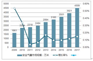 2009-2017年安全氣囊行業(yè)市場規(guī)模情況