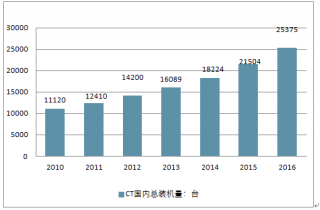 2010年-2016年國內(nèi)CT設(shè)備總裝機(jī)量