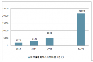 中國跨境電商目前以B2B 為主,2015 年B2B 占84.3%,B2C 僅占15.7%,但B2C 是跨境電商高速增長點。2015 年我國跨境電商B2C 交易額為7512億元,同比增長69%。其中,出口B2C 交易額增長60%至5032 億元;進口B2C 交易額增長348%至2480 億元;預計2020 年跨境電商B2C 出口額將達到2.16 萬億元,進口達1.5 萬億元。