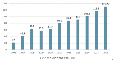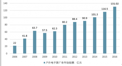 2006-2016年中國(guó)戶外電子屏廣告市場(chǎng)規(guī)模 |