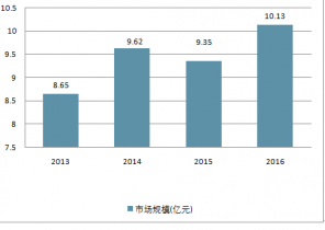 2014年市場(chǎng)規(guī)模為9.62億元,2015年有所下滑,約為達(dá)到9.35億元,2019年達(dá)到10.13億元。