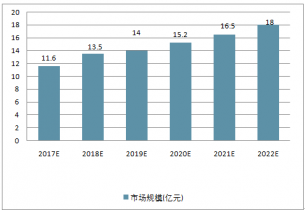 2019年市場(chǎng)規(guī)模達(dá)到10.13億元,預(yù)計(jì)每年以14.5%左右的增長(zhǎng)率增長(zhǎng),預(yù)計(jì)2022年達(dá)到18億元。