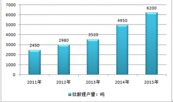 2011-2015年中國鈦酸鋰行業產量情況 |