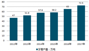 2012-2019年中國(guó)牙膏行業(yè)產(chǎn)量情況
