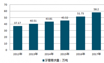 2012-2019年中國(guó)牙膏行業(yè)需求量情況