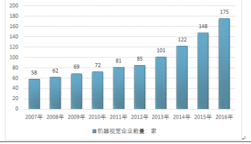 2007-2016年我國機(jī)器視覺企業(yè)數(shù)量 |