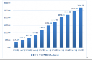 2006-2016年中國工程監(jiān)理行業(yè)銷售收入情況 |