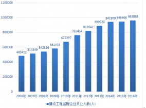 2006-2016年中國建設(shè)工程監(jiān)理行業(yè)從業(yè)人數(shù) |