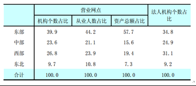 2015 年末銀行業(yè)金融機(jī)構(gòu)地區(qū)分布(單位:%) |