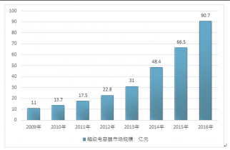 2009-2016年中國超級電容器產(chǎn)業(yè)規(guī)模 |