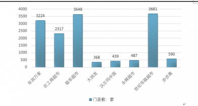 2016年中國(guó)主要超市企業(yè)門店數(shù)