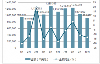 2016年1-12月中國新充氣橡膠輪胎出口金額為12,893,309千美元,同比下降6.9%。